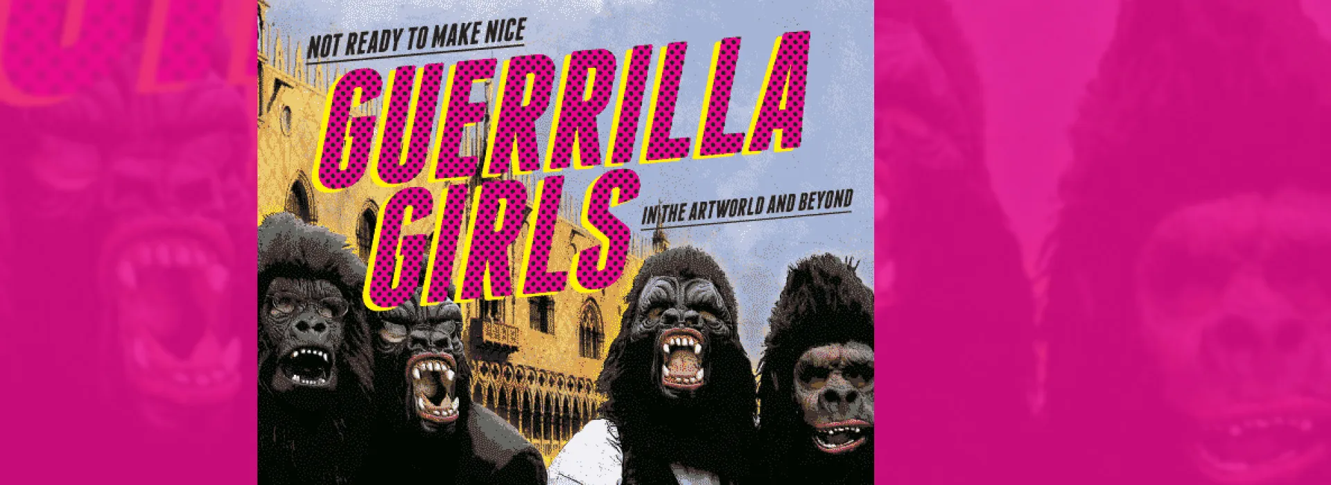 The Guerrilla Girls are a group of anonymous feminist activist artists who wear gorilla masks in public and use facts, humor and outrageous visuals to expose gender and ethnic bias, as well as corruption in politics, art, film, and pop culture. More than 55 people have been members over the years, some for weeks, some for decades. They have done more than 100 street projects, posters and stickers all over the world, including New York, Los Angeles, Minneapolis, Mexico City, Istanbul, London, Bilbao, Rotterdam and Shanghai.