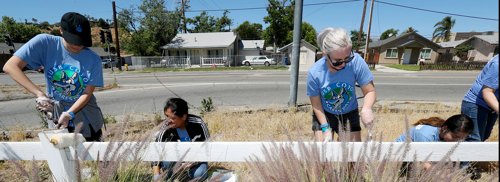 Visit the CSUSB Office of Community Engagement website or call (909) 537-7483 for more information on Coyote Cares Day and other community projects.
