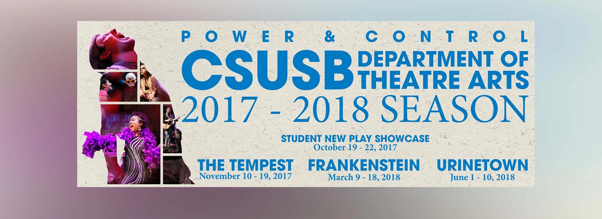 CSUSB’s Department of Theatre Arts presents the 2017-18 Season of Power & Control that will take you from a mysterious island of gods, to a madman’s laboratory, into a musical town with … more than a few fluid issues on the main stage.