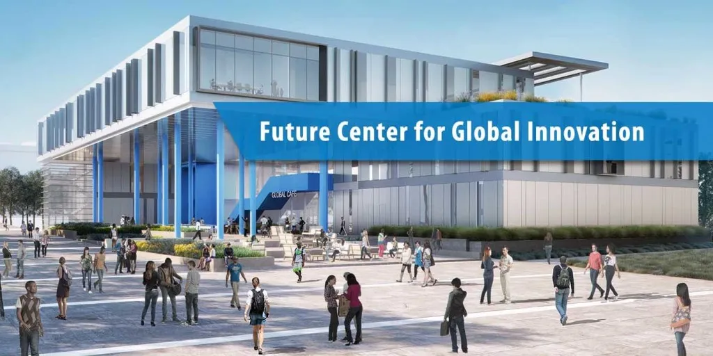 “The Center of Global Innovation will serve as an iconic centerpiece to an evolving central core at CSUSB for enhanced student and academic life guided by our exciting new university master plan,” vice president for Administration and Finance Doug Freer said. “Due to its premier location on the campus, the Center of Global Innovation will provide badly needed additional instruction space to accommodate expanding student enrollments in all our nearby colleges.”