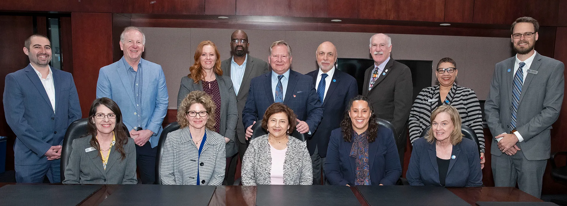 Union Bank Foundation representatives Rossina Gallegos, JR Raines and Jeff Redondo were on campus Jan. 29 for the check presentation ceremony held at the Jack H. Brown College. The presentation marked five years of partnership between CSUSB and the MUFG Union Bank Foundation in their commitment to strengthen small business and entrepreneurship in the Inland Empire.