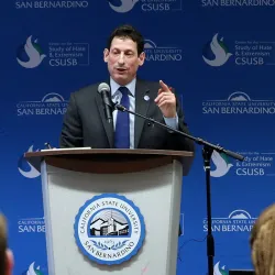 Criminal justice professor and director of CSUSB’s Center for the Study of Hate and Extremism Brian Levin was honored for his work and winning the 2020 CSU Wang Family Excellence Award at a reception on Feb. 27.