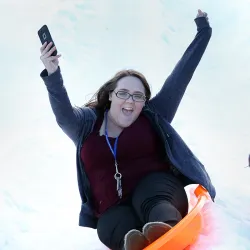 More than 1,000 Cal State San Bernardino students took refuge from warm, balmy weather by sledding, snowboarding and playing in makeshift wintery conditions for the 11th annual CSUSB Snow Day held on Jan. 18.