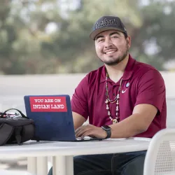 CSUSB history student Alex Espinoza (Chemehuevi), who is a two-time San Manuel Opportunity Scholarship recipient, plans to someday bring his knowledge – and the truth – about U.S. history to his own classroom.
